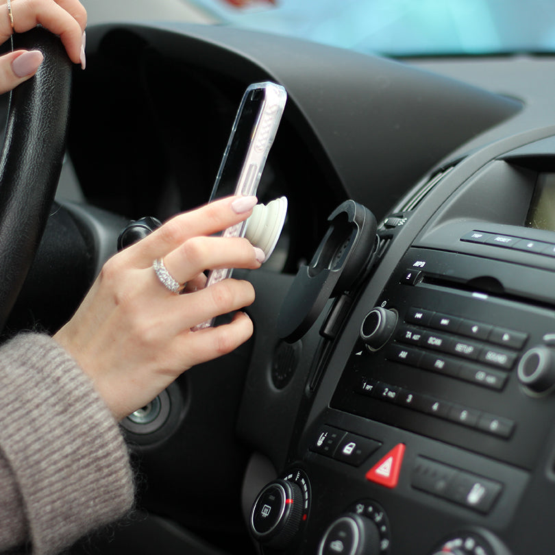 Just snap your grip into a PopSockets mount to use your phone hands-free