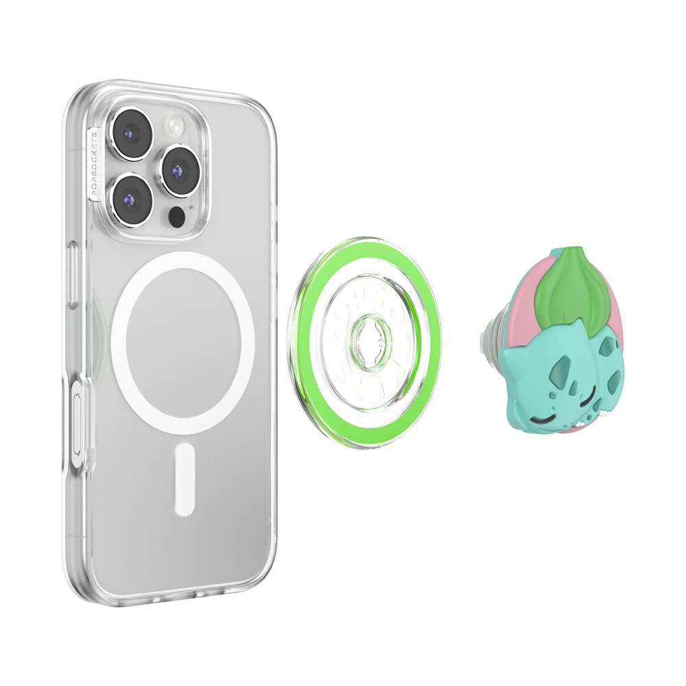 Cozy Bulbasaur energy in a cool, lush style. Easily swap between MagSafe accessories. Includes magnetic adapter ring for compatibility.